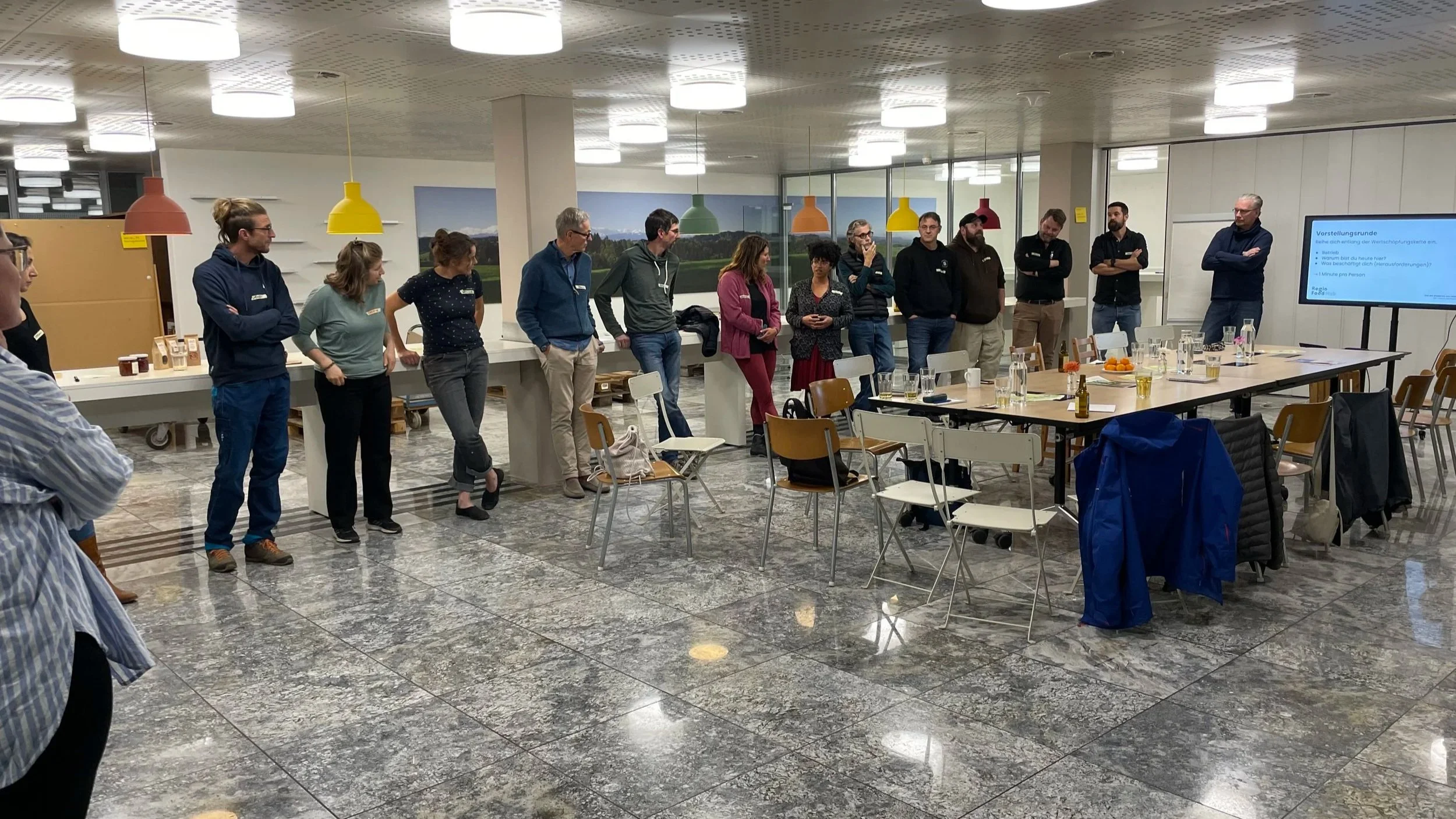 Am 3. November trafen sich rund 20 Akteur:innen aus Landwirtschaft, Verarbeitung, Gastronomie, Forschung und Zivilgesellschaft in der Coworking Küche Bern in Zollikofen zum Runden Tisch „Pflanzenbasierte Wertschöpfungsketten“. Ziel war es, gemeinsam zu erkunden, wie wirtschaftlich tragfähige und praxistaugliche pflanzenbasierte Wertschöpfungsketten in der Region Bern (weiter)entwickelt werden können.